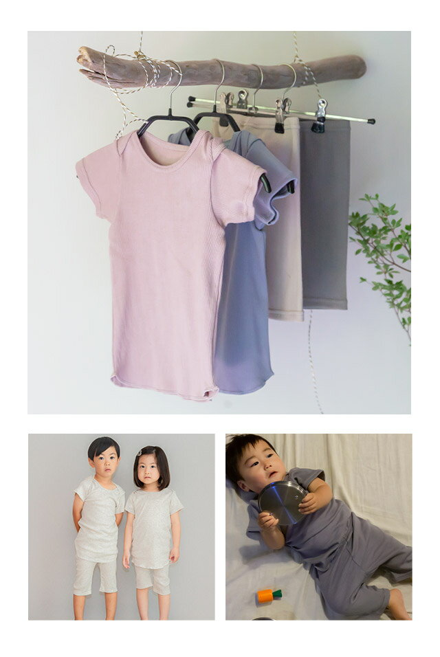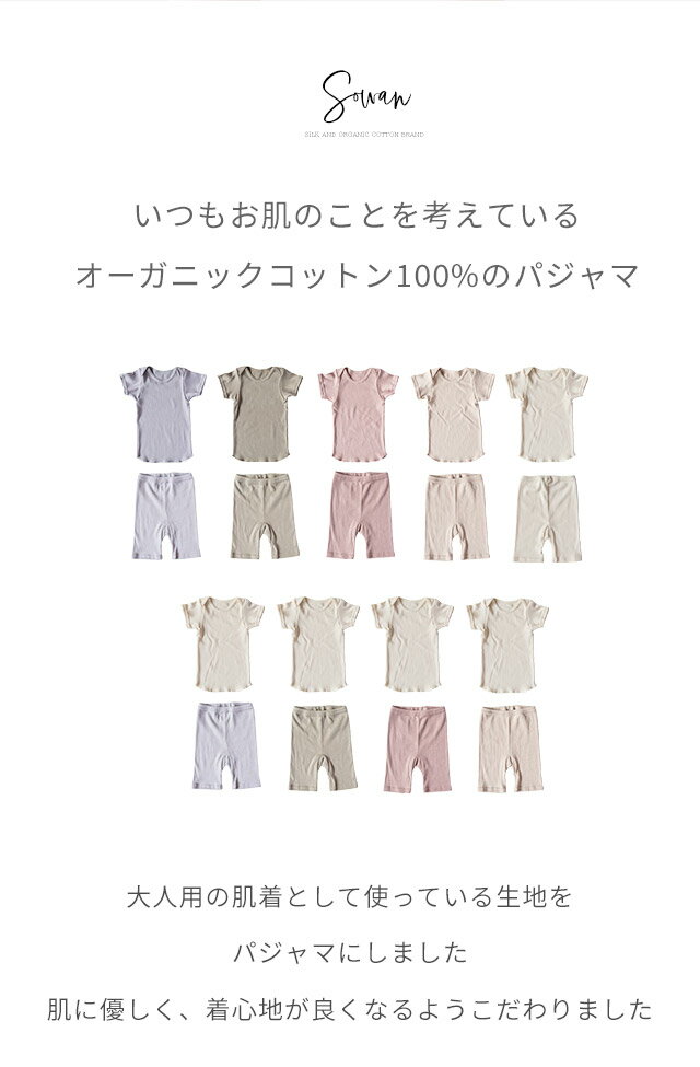 【日本製】オーガニックコットン パジャマ ベビー 半袖 キッズ 綿100 夏 上下 セット 子供 子ども くすみカラー 部屋着 赤ちゃん 女の子 男の子 半袖 薄手 ルームウェア 涼しい かわいい 80 90 100 110 おしゃれ