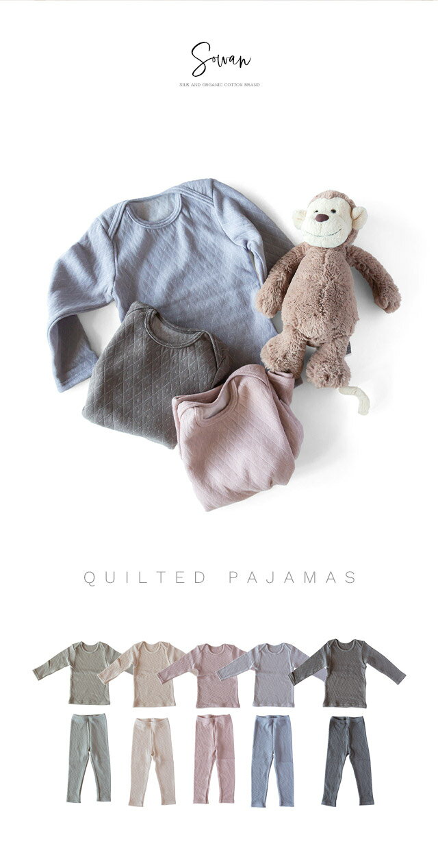キルティング起毛パジャマ くすみカラー 長袖 あったかい キッズ 子供 子ども こども ベビー 赤ちゃん 秋冬 冬用 女の子 男の子 ガールズ ボーイズ ルームウェア 上下 かわいい 腹巻き 付き おまけ 80 90 100 110 韓国風 幼児 柔らかい 日本製