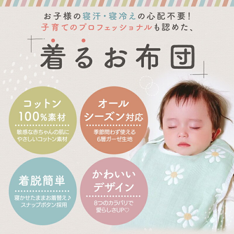 \毎月15日は店内全品P5倍!/スリーパー 寝冷え対策 キッズ ベビー Mサイズ 40cm×60cm ガーゼ 6重 ベビー スナップボタン 股 吸水性 ベスト おくるみ 綿 かわいい 花柄 虹 ユニコーン 6重ガーゼ Libaby リベビー