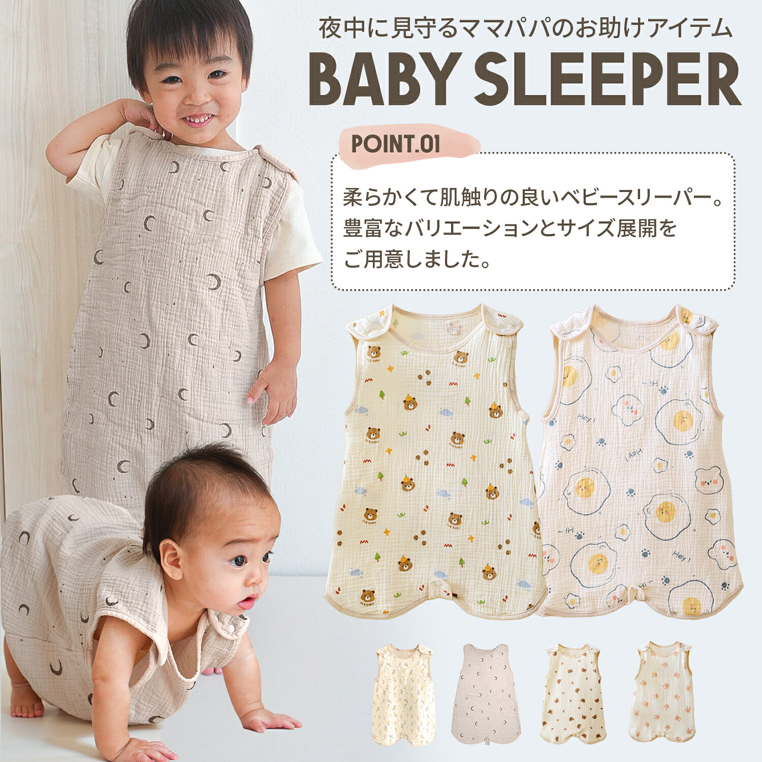【LINE追加で5%OFF】スリーパー キッズ ガーゼ 春用 夏用 綿 赤ちゃん ベビー 新生児 コットン ベビースリーパー ガーゼスリーパー ベスト 袖なし 柔らかい お昼寝 パジャマ イブル おくるみ スリーパー 寝冷え対策 かわいい 春 夏 秋
