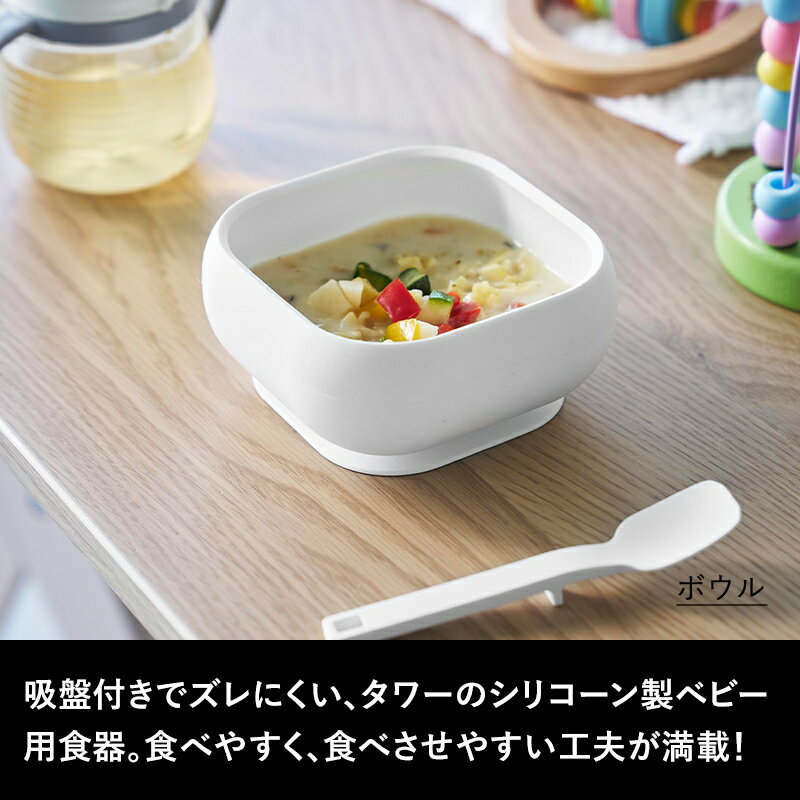 特典付き! 山崎実業 【 吸盤付きシリコーンベビーフードボウル タワー 】【 吸盤付きシリコーンベビーフードトレー タワー 】tower 赤ちゃん 皿 食器 シリコン ひっくり返らない 吸盤付き 離乳食 すくい やすい 単品 セット 公式 シンプル かわいい おしゃれ 新商品